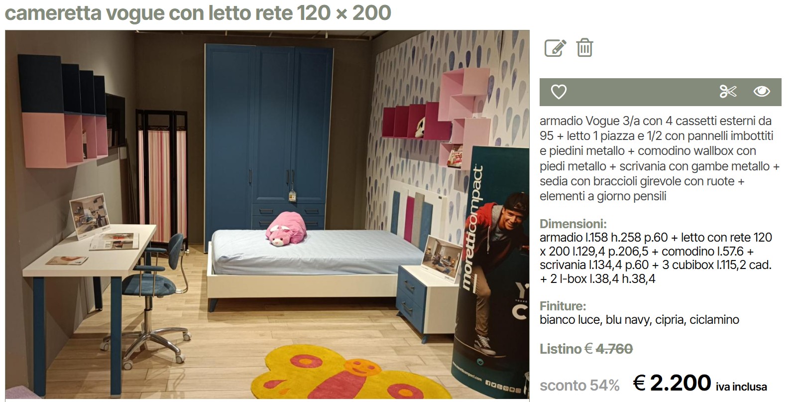 Cameretta con ponte angolare incluso di libreria terminale + comodino 4 cassetti con guide slow motion e scrivania.